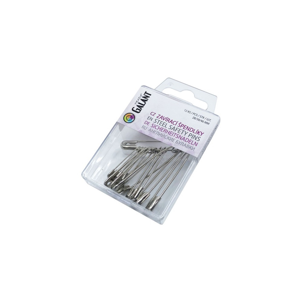 Špendlíky zavírací ocelové PREMIUM - 28-40-50mm - NI - 12ks/pl.krabička (11/12 - 1svazek/pl.kr.)