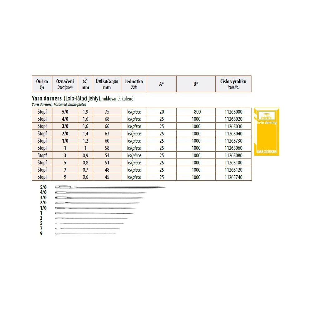 Yarn darners (Lolo-látací jehly), niklované, kalené