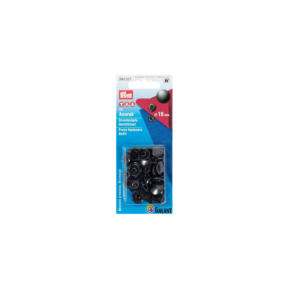 Knoflík stiskací ANORAK 15mm - černý oxid (Prym) - 10ks/karta