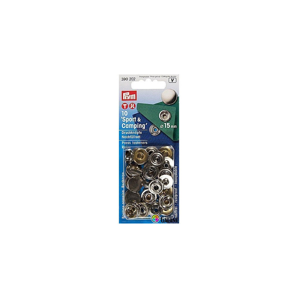 Stiskací knoflíky SPORT o průměru 15 mm ve stříbrném provedení jsou ideální pro použití na sportovní oblečení, doplňky nebo textilní projekty. Jsou vyrobeny z kvalitního materiálu a zajišťují pevné a spolehlivé spojení. Balení obsahuje 10 kusů knoflíků na praktické kartě, která umožňuje snadné skladování a použití. Produkt od renomovaného výrobce Prym zaručuje dlouhou životnost a vysokou kvalitu.
