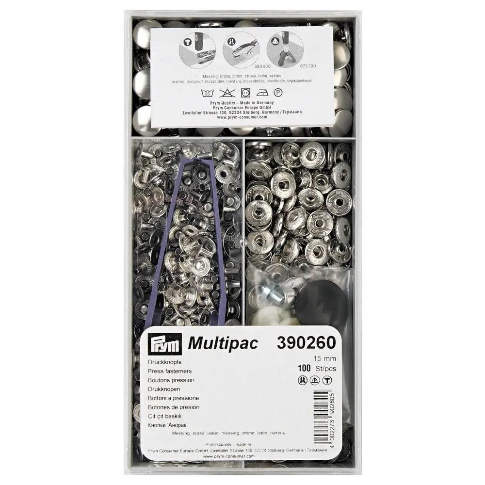 Knoflík stiskací ANORAK 15mm - stříbrný (Prym) - 100ks/krabička