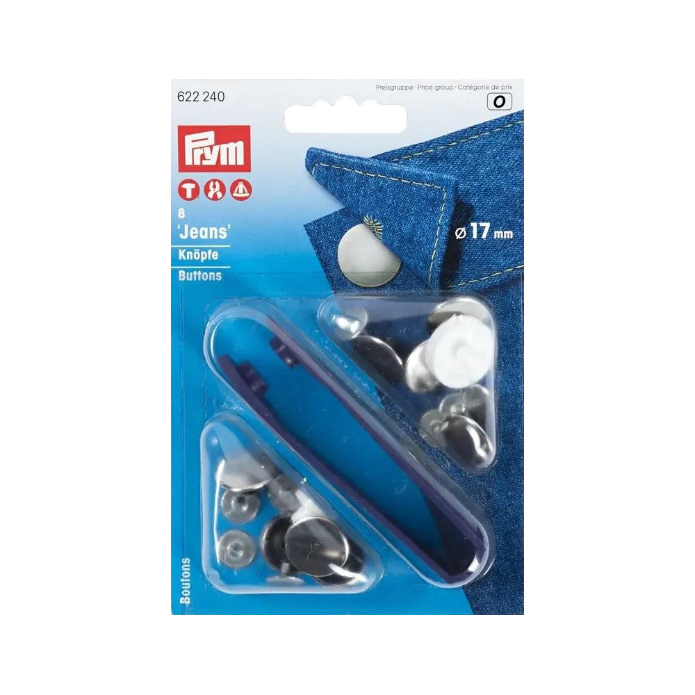 Knoflík JEANS 17mm - stříbrný (Prym) - 8ks/karta