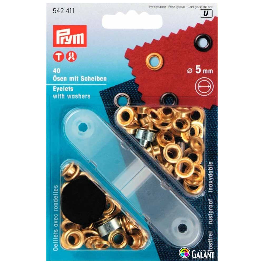 Průchodky s podložkou mosazné 5mm - zlaté (Prym) - 40ks/karta