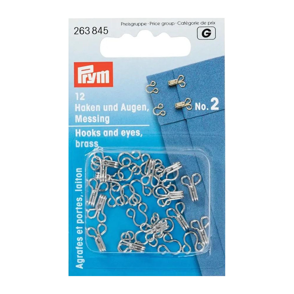 Háčky a očka mosazné 2 - stříbrné (Prym) - 12párů/karta