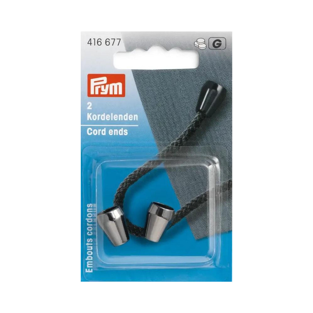 Koncovky šňůrky - gunmetal (Prym) - 2ks/karta