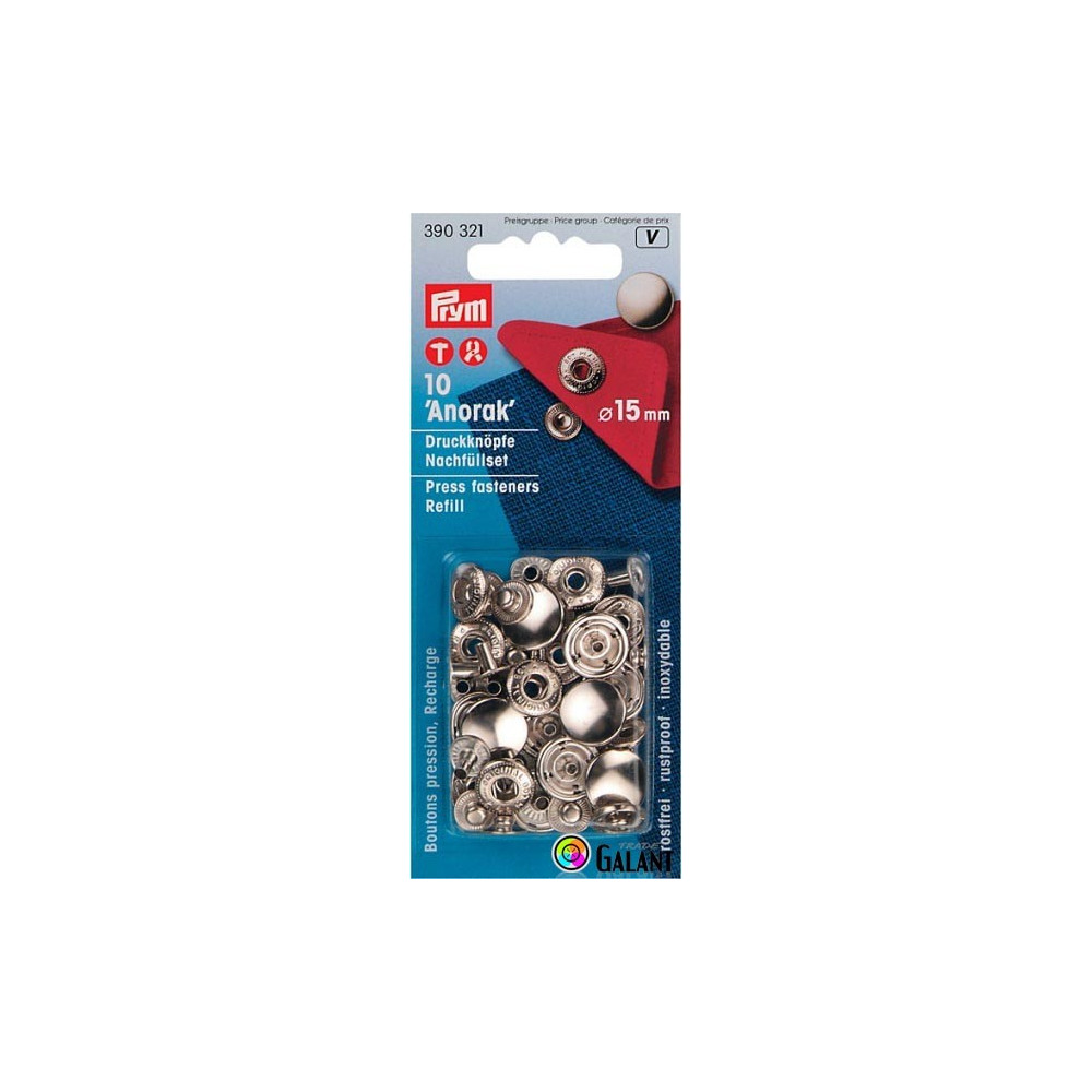 Press fasteners ANORAK 15mm - silver (Prym) - 10pcs/card