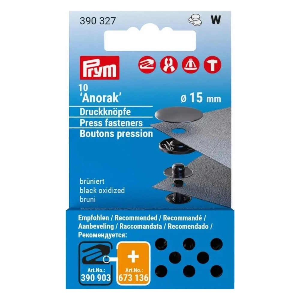 Press fasteners ANORAK 15mm - black oxid (Prym) - 10pcs/card