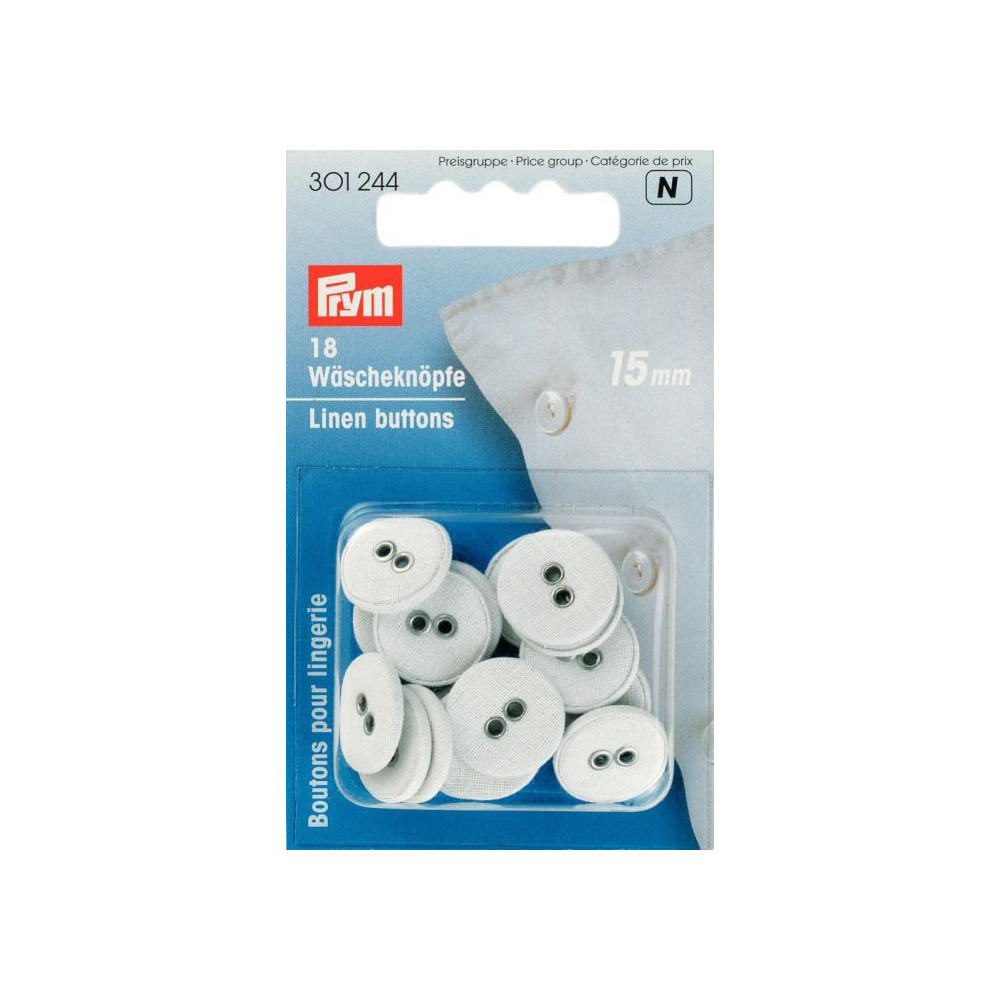 Linen Buttons 15 mm white (Prym) - 18pcs/card
