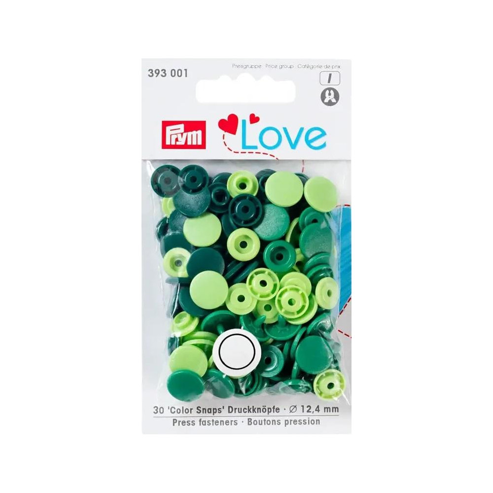 Press fasteners Colour Snaps PRYM LOVE 12,4mm - c. green - 30pcs/card