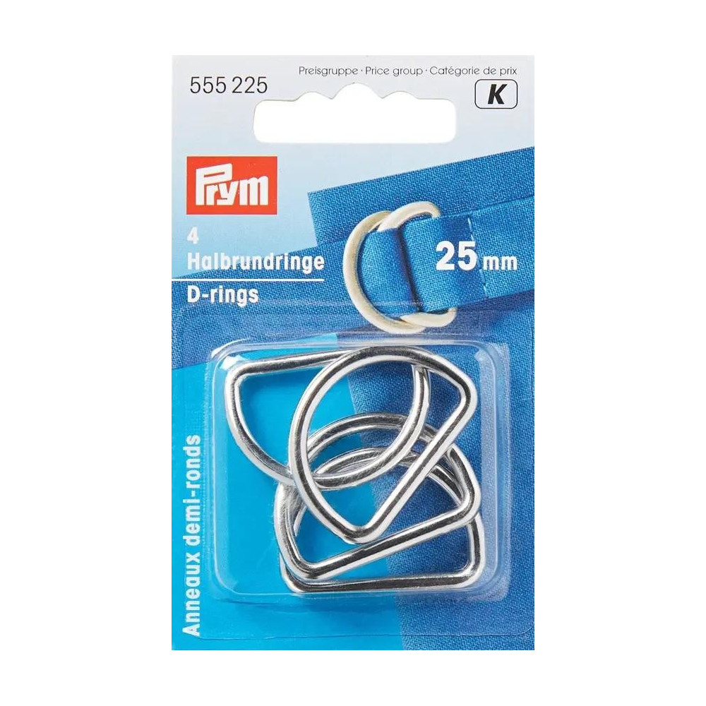 Prym 25 mm silver D-rings are perfect for crafting bags, belts, and other textile projects. The package contains 4 pieces.