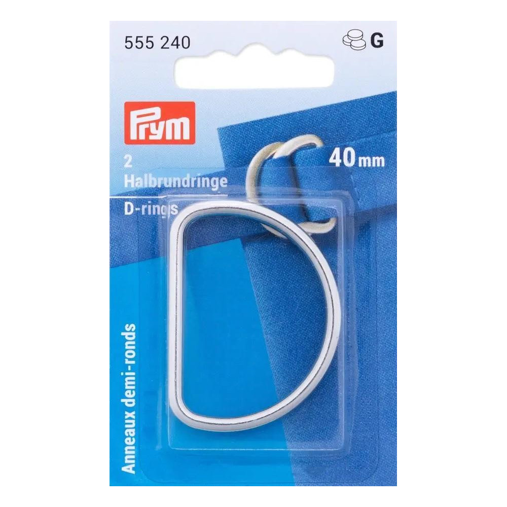 Prym 40 mm silver D-rings are perfect for various textile projects, such as making bags, belts, or straps. They are made of high-quality metal, ensuring strength and durability. The package contains 2 pieces, sufficient for most small projects.