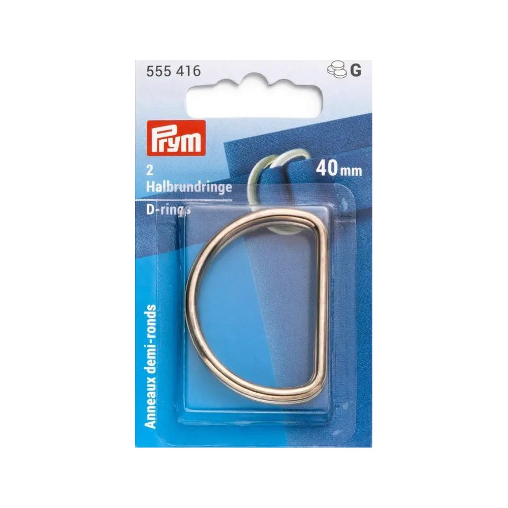 These high-quality 40 mm gold D-rings by the renowned brand Prym are perfect for crafting and repairing bags, belts, straps, and other textile products. The package includes 2 pieces, ideal for smaller projects. Made from durable materials, these D-rings ensure longevity and reliability in use.